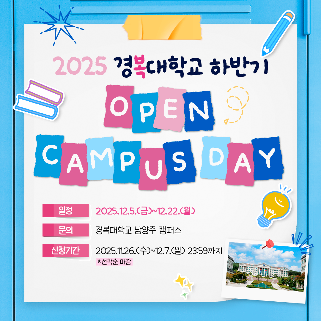 수시2차 잠재력을 전문가로, 경복대학교 수시2차 수시2차 모집요강 입시일정 입시결과 원서접수 지원현황 공지사항 입학상담 입시일정 250년 251 252년 전체 01월 02월 03월 04월 05월 06월 07월 08월 09월 10월 11월 12월 월간일정 연간일정 251년 2월 학사일정 달력으로 일별 일정 제공 일 월 화 수 목 금 토 SUN MON TUE WEN THU FRI SAT 1 2 3 4 5 6 7 8 9 10 11 12 13 14 15 16 17 18 19 20 21 22 23 24 25 26 27 28 상기 일정은 사정에 따라 변경 될 수 있습니다.